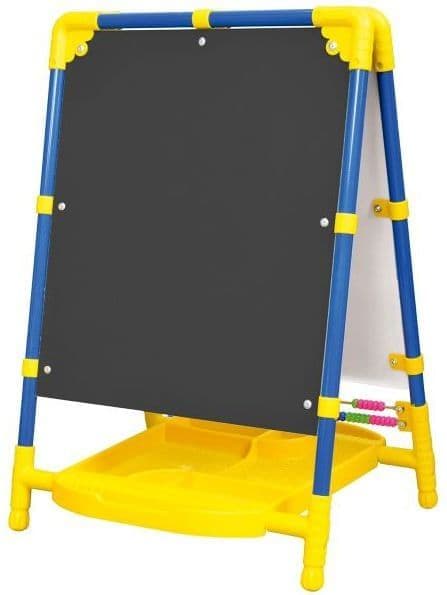 Две рабочие поверхности, пенал, зажим для бумаги, счеты, магнитная азбука, магнитные цифры, мелки