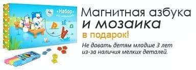 в комплект входит набор для творчества: для меловой поверхности – цветные мелки; для магнитной поверхности – русская азбука, цифры, знаки препинания