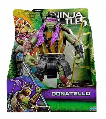 На голову Донателло надета яркая повязка фиолетового цвета с отверстиями для глаз.