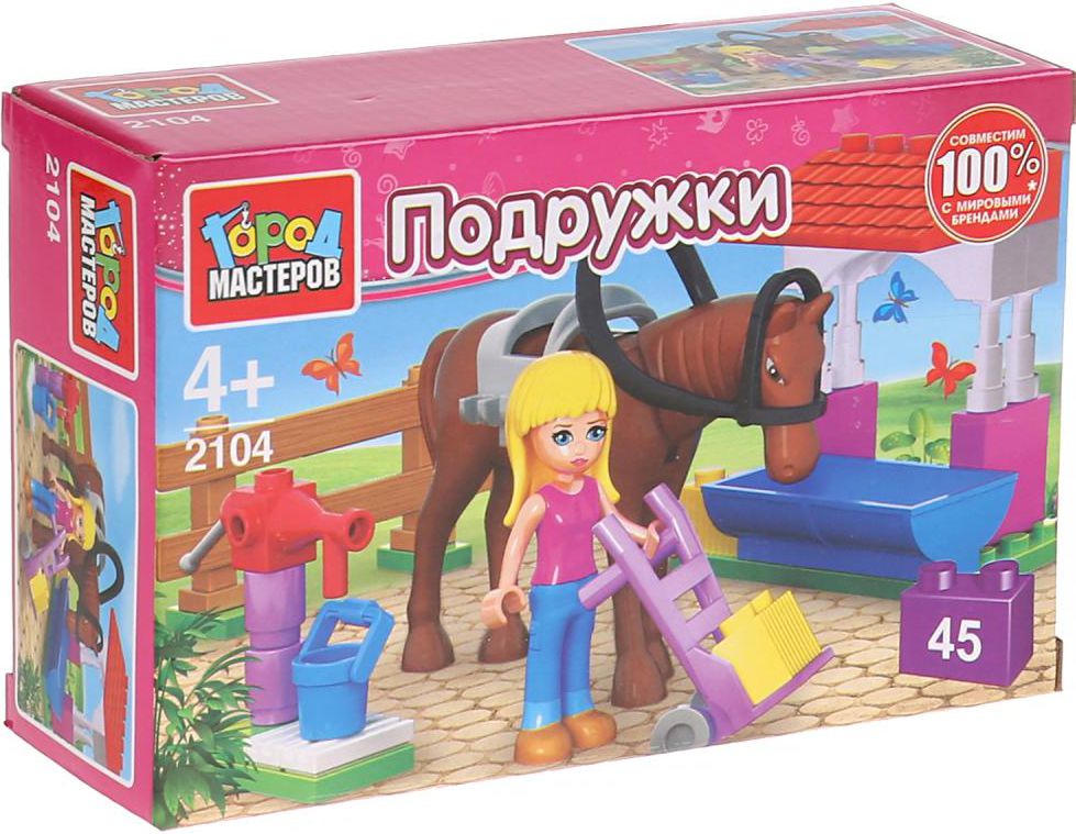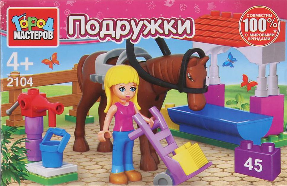 Конструктор КОНЮШНЯ серия ПОДРУЖКИ фигурка лошади, фигурка девочки 45 деталей.