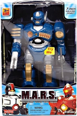 Робот преобладающего синего цвета достигает в высоту 17,5 см и всегда готов к любому внезапному сражению.