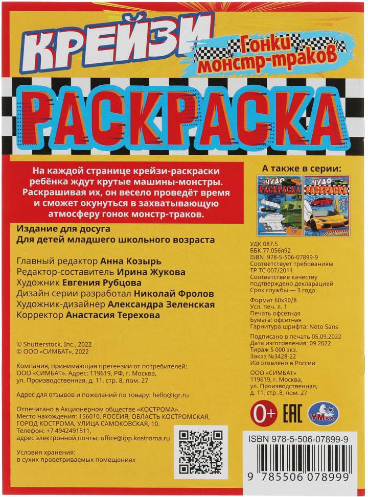 Крейзи-раскраска «Гонки монстр-траков» ТМ «УМка» приглашает детей порисовать: